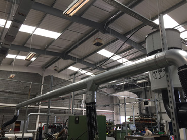 The installation involved mounting the Filtermists on floor stands and connecting them to fishtail capture hoods over the top of each machine using flexible and solid ducting. The multi-point extraction system also incorporates fire dampers, designed to close the extraction system down should a fire break out in the machine tool.